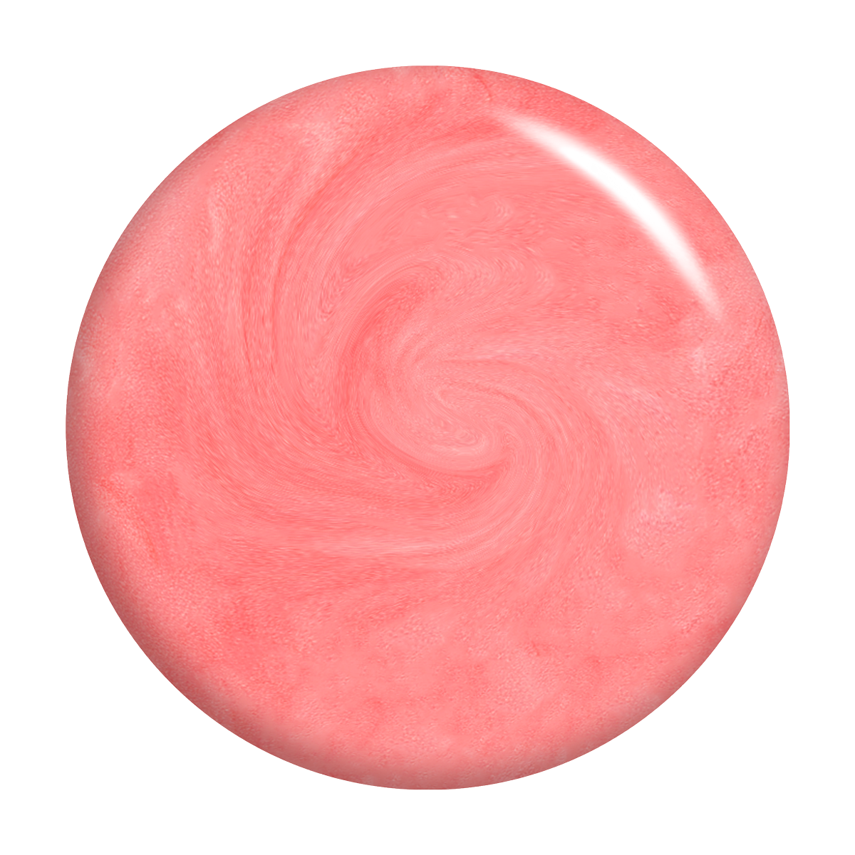 Reddish pink. Pastel. Pearl finish. Opaque. Warm undertone.